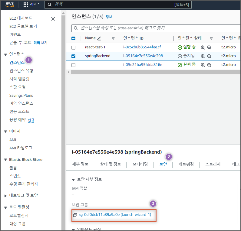 [인스턴스세부정보 > 보안 > 보안그룹]