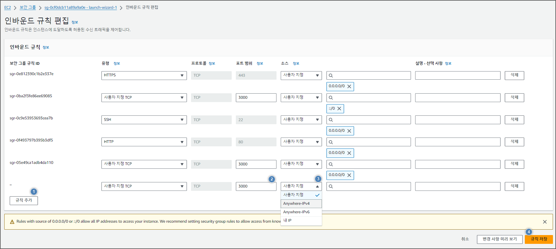 인바운드 규칙 편집을 클릭하면 아래의 페이지로 이동한다.