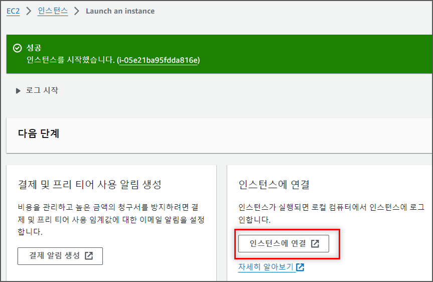 인스턴스 시작을 투르고 아래의 페이지로 이동이 된다!